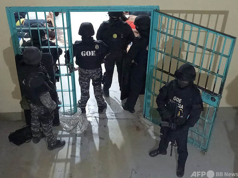 グアヤキルの刑務所では28日、主にメキシコの麻薬カクテル「シナロア・カルテル(Sinaloa Cartel)」と「ハリスコ新世代(Jalisco New Generation)」に関係する受刑者間の抗争から暴動が発生。鎮圧に警官約900人が投入された。(c)AFP