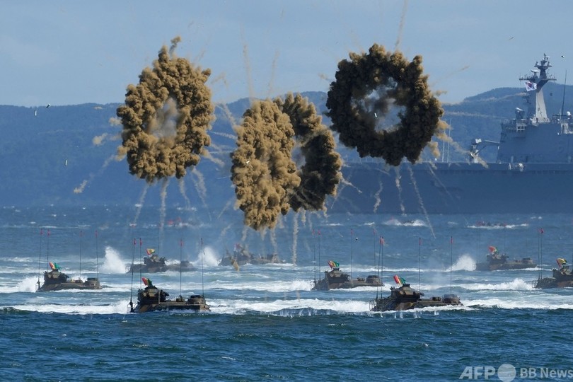 【10月1日 AFP】韓国南東部の浦項(Pohang)で1日、「国軍の日(Armed Forces Day)」に合わせた記念式典や軍事演習が行われた。