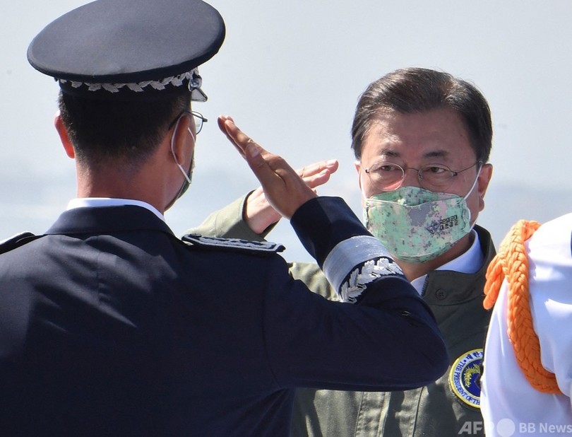式典には文在寅(ムン・ジェイン、Moon Jae-in)大統領が出席。前日の9月30日には、軍艦や戦闘機、水陸両用車などが参加する訓練の様子が報道陣に公開された。(c)AFP