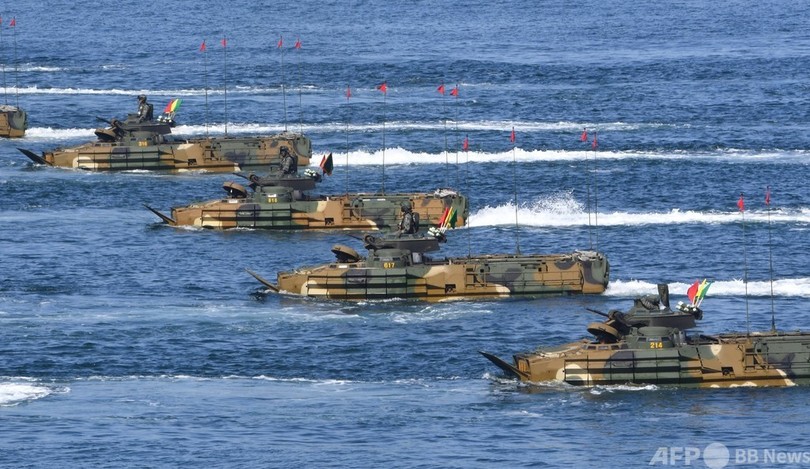 【10月1日 AFP】韓国南東部の浦項(Pohang)で1日、「国軍の日(Armed Forces Day)」に合わせた記念式典や軍事演習が行われた。