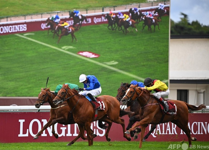 日本からは、初挑戦した52年前からの悲願である凱旋門賞制覇に向けて今年も2頭が出走したが、不本意な結果に終わった。期待の高かったオイシン・マーフィー(Oisin Murphy)騎手騎乗のクロノジェネシス(Chrono Genesis)は序盤から先頭のアダイヤー(Adayar)の後方につけ、2番手で最終コーナーをまわったが、上位3頭の仕掛けについていくだけの末脚は残っておらず、7着に終わった。(c)AFP/Pirate IRWIN