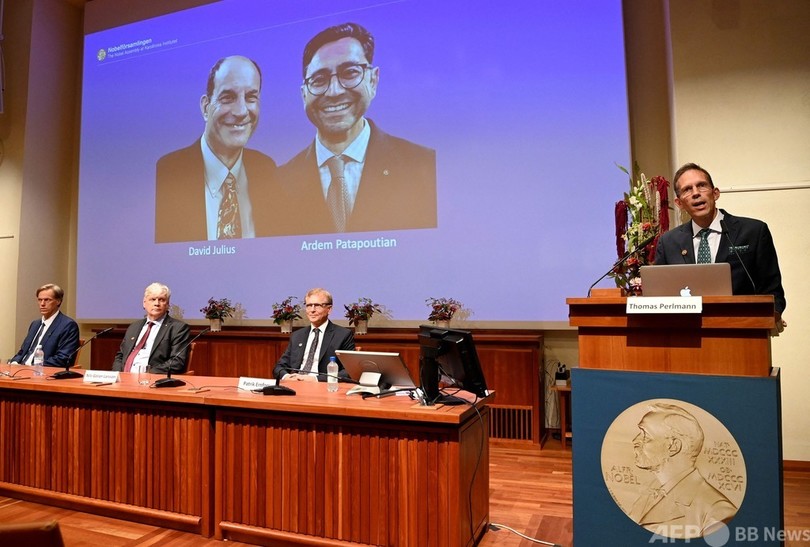 【10月4日 AFP】(更新)スウェーデンのカロリンスカ研究所(Karolinska Institute)は4日、2021年のノーベル医学生理学賞(Nobel Prize in Physiology or Medicine)を、温度感覚と触覚の受容体を発見した功績で、米国のデービッド・ジュリアス(David Julius)氏とアーデム・パタポティアン(Ardem Patapoutian)氏に授与すると発表した。