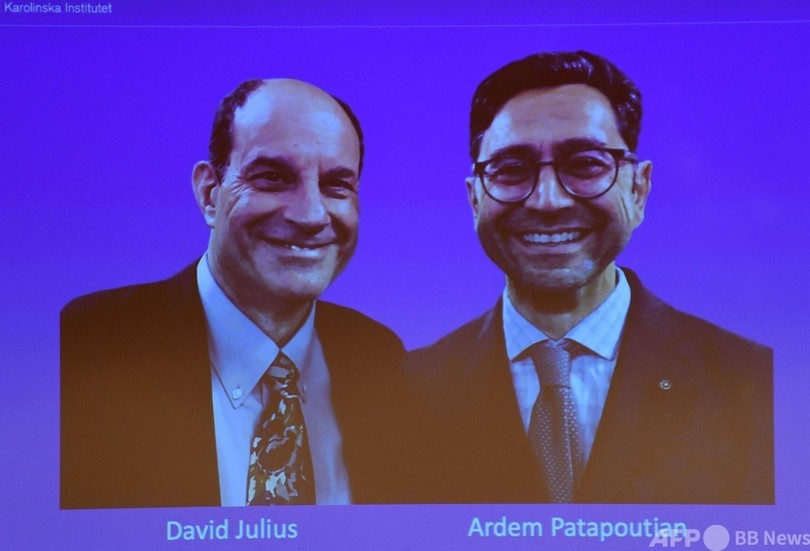 ジュリアス氏は、カリフォルニア州サンフランシスコにあるカリフォルニア大学(University of California)の教授。パタポティアン氏は、同州のスクリプス研究所(Scripps Research Institute)で教授を務めている。両氏は、賞金1000万クローナ(約1億2700万円)を分け合う。(c)AFP