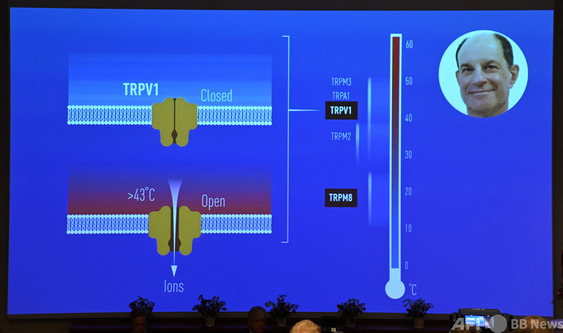 ジュリアス氏は、カリフォルニア州サンフランシスコにあるカリフォルニア大学(University of California)の教授。パタポティアン氏は、同州のスクリプス研究所(Scripps Research Institute)で教授を務めている。両氏は、賞金1000万クローナ(約1億2700万円)を分け合う。(c)AFP