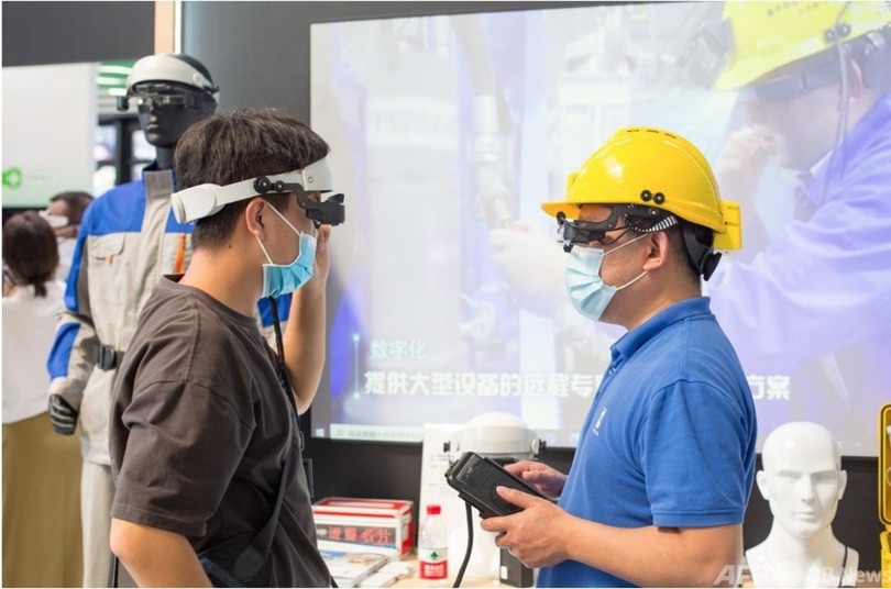通信大手の中国電信(China Telecom)の展示エリアでは、来場者が5Gスマートショベルカーの操縦室に入り、遠隔運転を疑似体験した。鉱山の採掘作業でスマート化、無人化を実現し、作業効率を向上させるという。