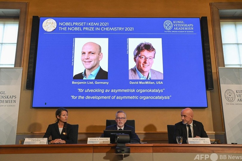 2021年ノーベル化学賞、独米の2氏に 環境に優しい有機触媒を開発