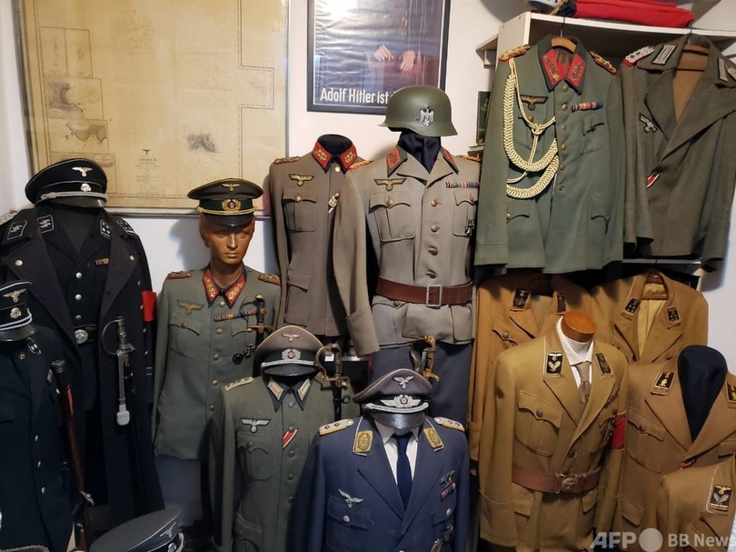 同容疑者の自宅からは、ナチス関連の記章や文書、制服、旗など数百点が発見された。同容疑者の写真が添付されたナチ党の党員証もあった。警察が公開した写真には、額に入ったアドルフ・ヒトラー(Adolf Hitler)の写真や胸像も写っている。