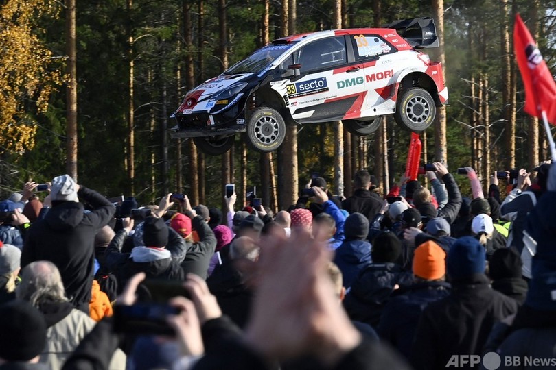 【10月11日 AFP】世界ラリー選手権(WRC 2021)、第10戦ラリー・フィンランド(Secto Automotive Rally Finland 2021)最終日。大勢の観客が見守る中、レースに臨むトヨタ(Toyota)のエルフィン・エバンス(Elfyn Evans、英国)とコ・ドライバーのスコット・マーティン(Scott Martin)。フィンランド・ラウカー(Laukaa)で。優勝したエバンスは、年間首位に立つセバスチャン・オジェ(Sebastien Ogier、フランス)との差を縮めた。(c)AFP