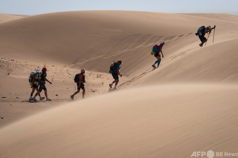【10月10日 AFP】世界で最も過酷な環境と言われるサハラ(Sahara)砂漠を数日間かけて走る「サハラマラソン(Marathon des Sables)」が、モロッコ南部で開催されている。第35回となった今年も、250キロ走破を目指して多くのランナーたちが参加している。(c)AFP