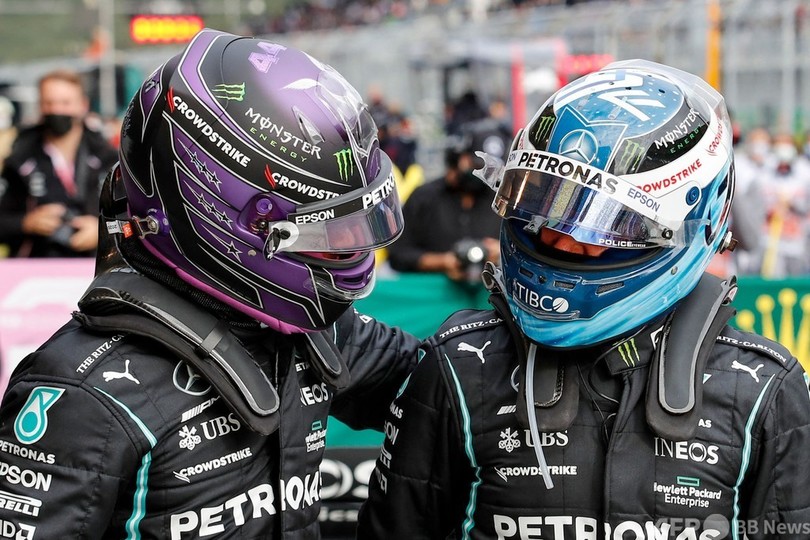 【10月10日 AFP】21F1第16戦トルコGP(Turkish Grand Prix 2021)は9日、予選が行われ、圧巻の走りを見せたメルセデスAMG(Mercedes AMG)のルイス・ハミルトン(Lewis Hamilton)がトップタイムを記録したが、パワーユニット(PU)交換による10グリッド降格が決まっているため、チームメートのバルテリ・ボッタス(Valtteri Bottas)がポールポジションからスタートすることになった。