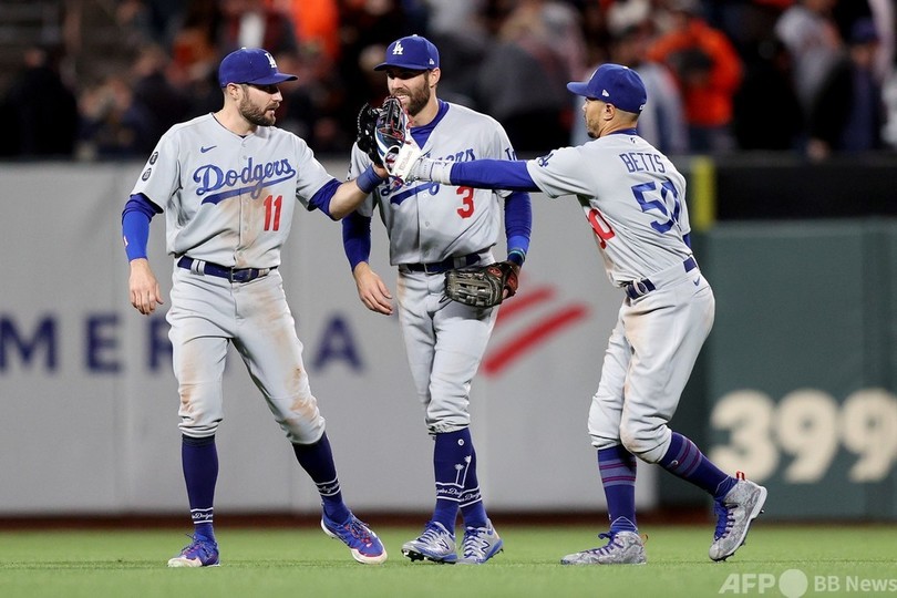 【10月10日 AFP】21MLBは9日、ナ・リーグの地区シリーズ(5回戦制)が行われ、王者ロサンゼルス・ドジャース(Los Angeles Dodgers)が9-2でサンフランシスコ・ジャイアンツ(San Francisco Giants)を下し、シリーズ戦績を1勝1敗のタイとした。