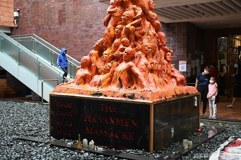 香港大に設置された天安門事件追悼の像、大学側が撤去要請