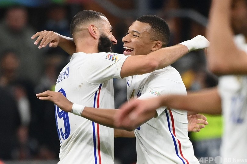 ミケル・オヤルサバル(Mikel Oyarzabal)にゴールを決められ64分に先制された世界王者フランスは、わずか2分後にカリム・ベンゼマ(Karim Benzema)の得点で追いつくと、80分にはエムバペが逆転弾をマークした。