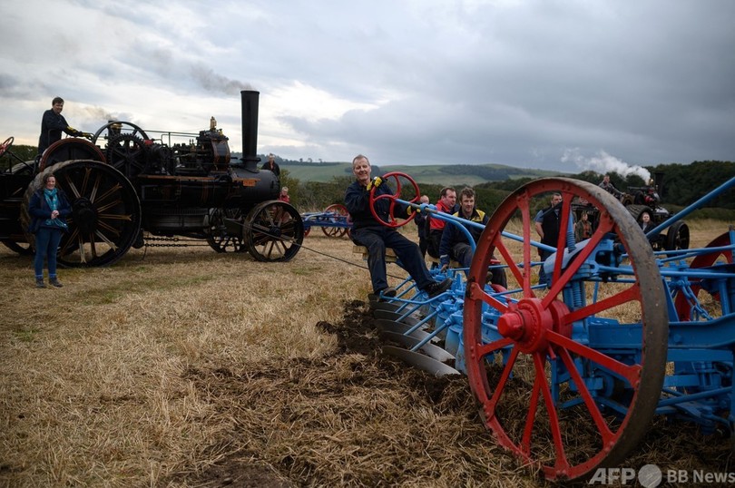 蒸気機関で動く耕運機も! 全英「耕し」選手権、2年ぶり開催