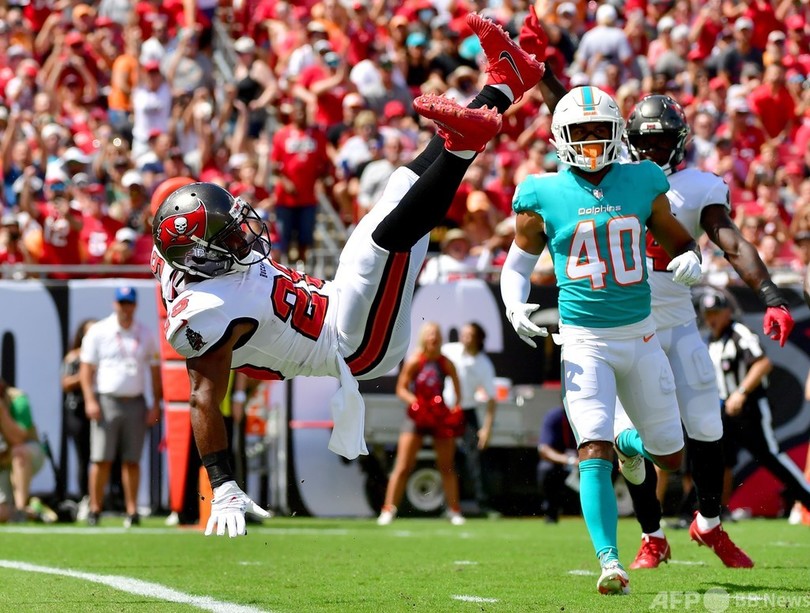 【10月11日 AFP】21NFLは10日、第5週の試合が行われ、タンパベイ・バッカニアーズ(Tampa Bay Buccaneers)はまたしてもQBトム・ブレイディ(Tom Brady)が傑出したパフォーマンスを披露し、マイアミ・ドルフィンズ(Miami Dolphins)を45-17で下して今季4勝1敗とした。