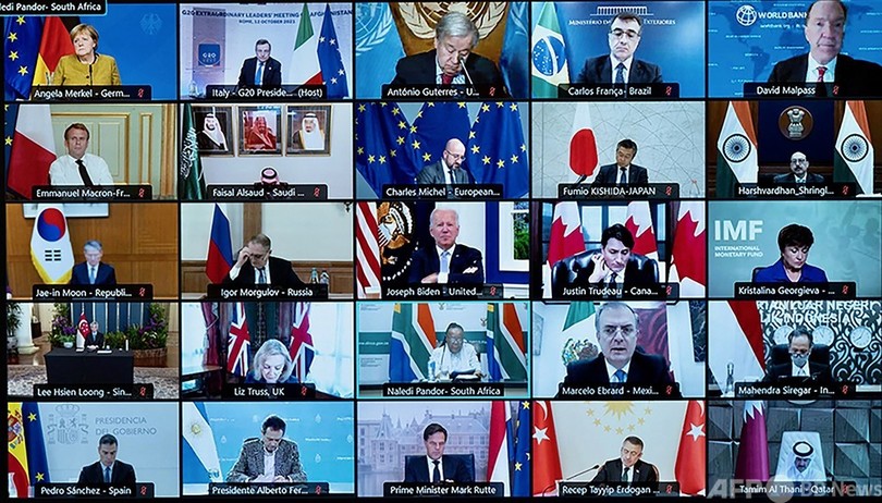 【10月13日 AFP】20か国・地域(G20)の首脳は12日、オンライン形式で会談し、アフガニスタンでの人道危機回避に向けた協力で一致した。欧州連合(EU)は、10億ユーロ(約1300億円)の支援を約束。主催国のイタリアは、アフガニスタンを制圧したイスラム主義組織タリバン(Taliban)との対話を維持する必要性を強調した。