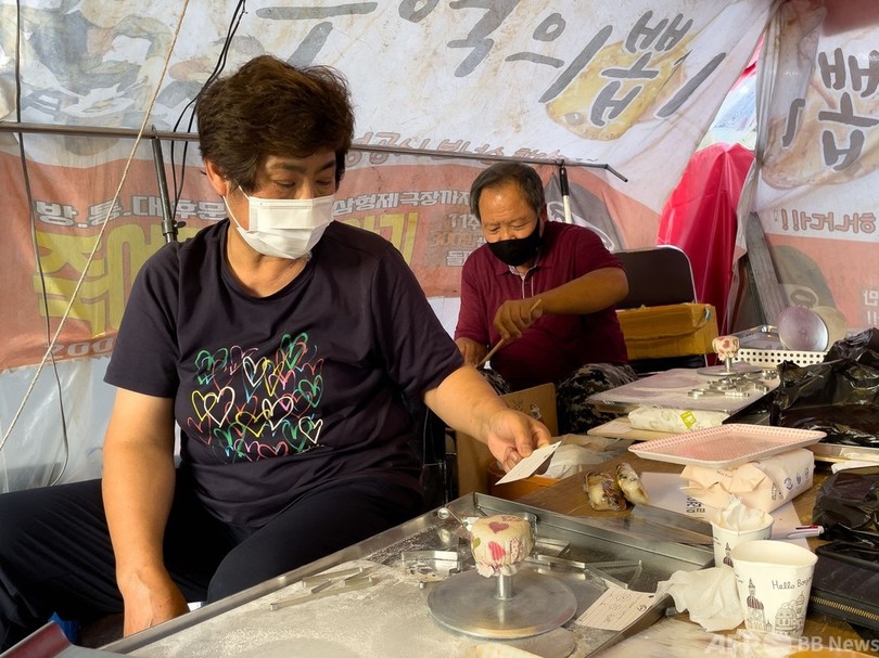 2人が営むソウルの簡素な屋台は今、市内で最も人気のスポットの一つとなっている。開店するや否や次々と注文が入り、行列ができ、時には6時間待ちになる。価格は1枚2000ウォン(約190円)。あまりの人気にあきらめて手ぶらで帰る人もいる。
