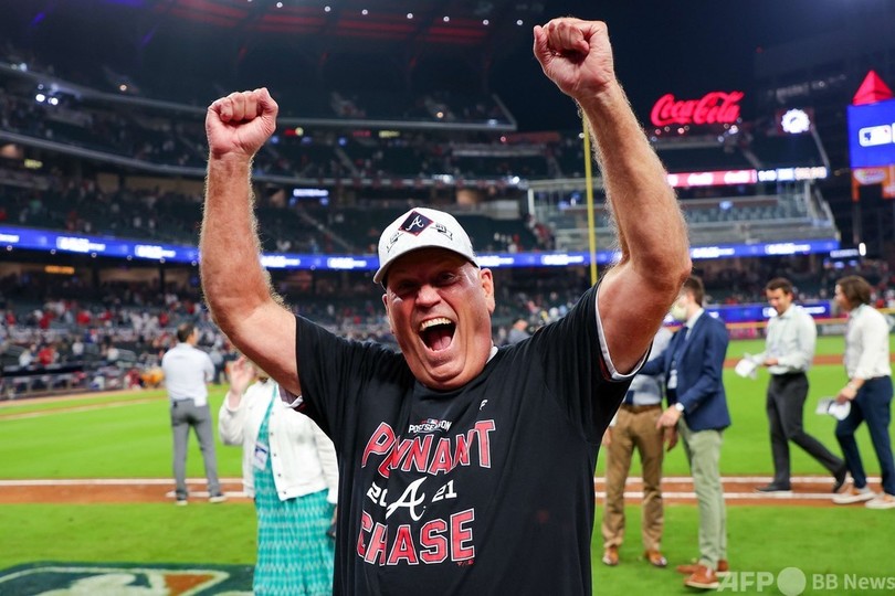 ブレーブスはロサンゼルス・ドジャース(Los Angeles Dodgers)かサンフランシスコ・ジャイアンツ(San Francisco Giants)とワールドシリーズ進出を懸けて争う。ドジャースはこの日の試合でジャイアンツに7-2で勝利し、シリーズ戦績を2勝2敗の5分に戻している。(c)AFP