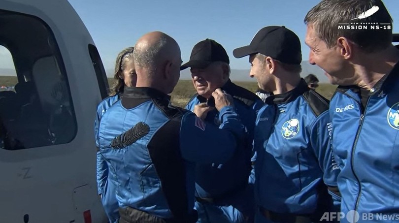 実年齢よりも数十歳若く見えるシャトナーさんだが、90歳での宇宙飛行は史上最高齢となった。米テキサス州から打ち上げられた宇宙船は大気圏と宇宙との境を越え、11分間の飛行を終えて砂漠に無事着陸。ブルー・オリジン創業者ジェフ・ベゾス(Jeff Bezos)氏は、宇宙船から降りてきた乗客を出迎え、拍手とシャンパンで祝った。