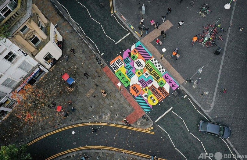 【10月14日 AFP】英イングランド北西部リバプールにこのほど、地元企業のSo-Moが行動科学に基づいてデザインした横断歩道が設置された。市内中心部の事故多発地域で、横断歩道の利用を促すのが狙いだ。