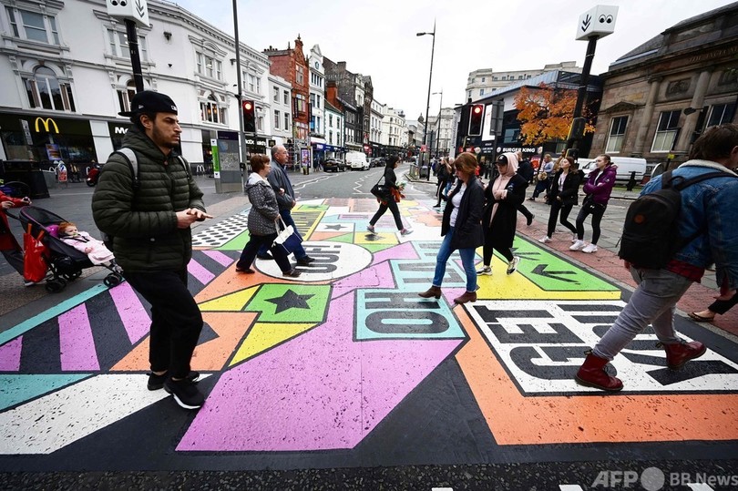 【10月14日 AFP】英イングランド北西部リバプールにこのほど、地元企業のSo-Moが行動科学に基づいてデザインした横断歩道が設置された。市内中心部の事故多発地域で、横断歩道の利用を促すのが狙いだ。