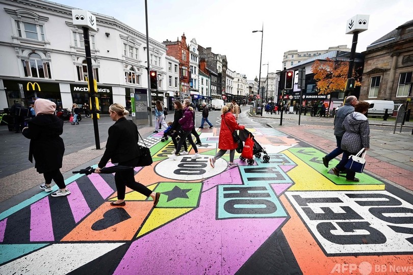 【10月14日 AFP】英イングランド北西部リバプールにこのほど、地元企業のSo-Moが行動科学に基づいてデザインした横断歩道が設置された。市内中心部の事故多発地域で、横断歩道の利用を促すのが狙いだ。