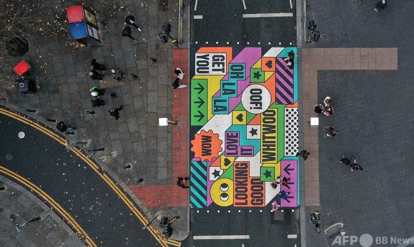 【10月14日 AFP】英イングランド北西部リバプールにこのほど、地元企業のSo-Moが行動科学に基づいてデザインした横断歩道が設置された。市内中心部の事故多発地域で、横断歩道の利用を促すのが狙いだ。