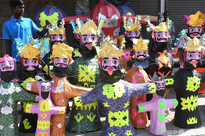 【10月15日 AFP】ヒンズー教の祭りの季節を迎えたインドでは、およそ2年ぶりにあちこちの市場や会場がにぎわっている。