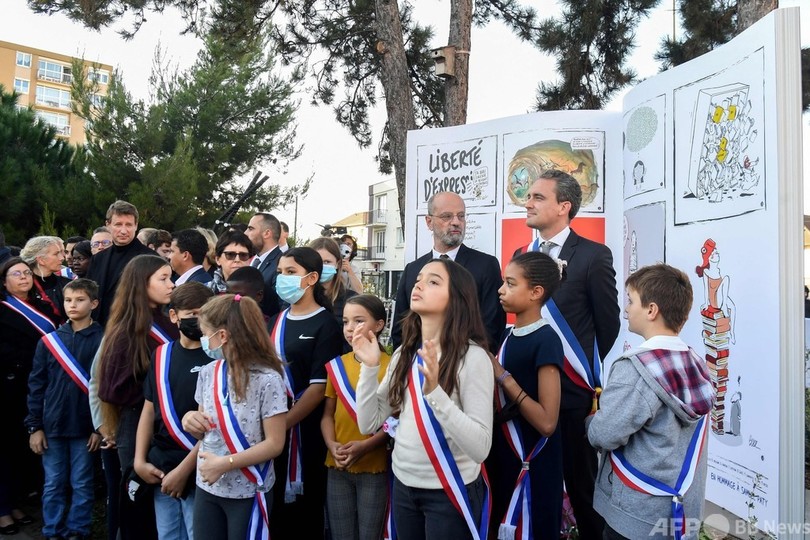 【10月17日 AFP】イスラム教の預言者ムハンマド(Prophet Mohammed)の風刺画を授業の教材にしたフランス人教師のサミュエル・パティ(Samuel Paty)氏(当時47)が過激主義者に斬首された事件から16日で1年となり、各地で追悼式典が開かれた。