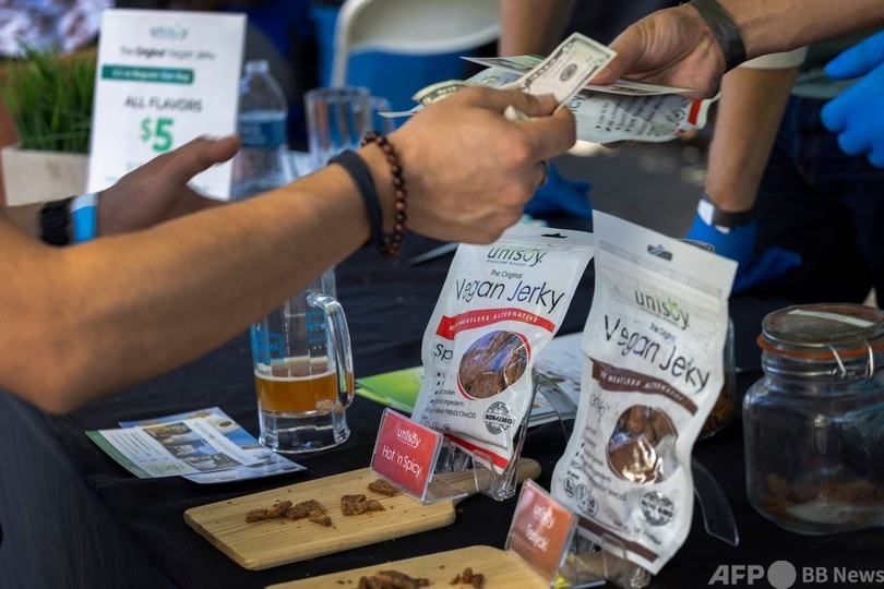 【10月18日 AFP】米カリフォルニア州ロサンゼルスで16日、ビーガン(完全菜食主義者)向けのビールの祭典「ビーガン・オクトーバーフェスト(Vegan Oktoberfest)」が開催された。会場では動物由来の成分を含まないビールやジャーキーなどが販売され、本場ドイツの民族衣装に身を包んだ来場者の姿も見られた。(c)AFP