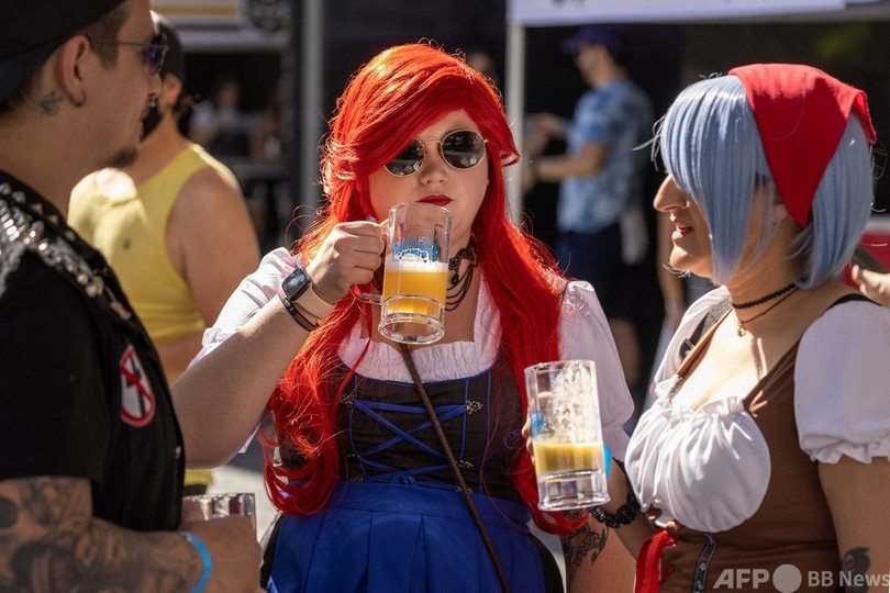 【10月18日 AFP】米カリフォルニア州ロサンゼルスで16日、ビーガン(完全菜食主義者)向けのビールの祭典「ビーガン・オクトーバーフェスト(Vegan Oktoberfest)」が開催された。会場では動物由来の成分を含まないビールやジャーキーなどが販売され、本場ドイツの民族衣装に身を包んだ来場者の姿も見られた。(c)AFP