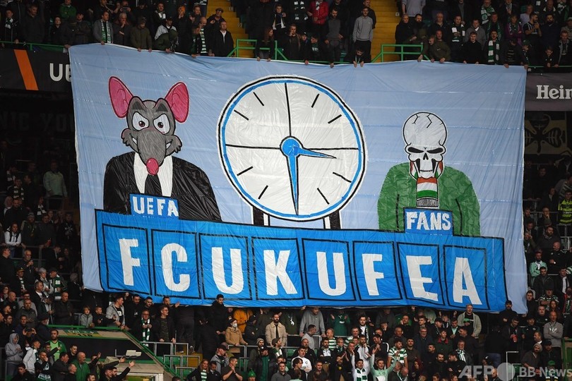 そのためセルティックのファンは、放映権よりも会場を訪れる観客を大事にするよう訴える横断幕を掲示して抗議したが、実際の試合内容は、このキックオフ時間にもかかわらず本拠地セルティック・パーク(Celtic Park)に集まった5万人以上の観客を沸かせるものとなった。(c)AFP