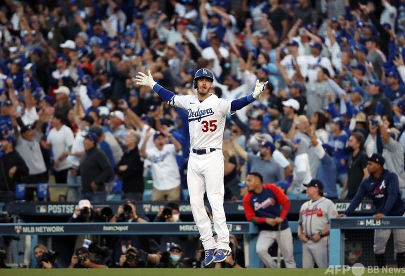 【10月20日 AFP】21MLBは19日、ナ・リーグ優勝決定シリーズ(7回戦制)が行われ、コディ・ベリンジャー(Cody Bellinger)が終盤に同点の3点本塁打を放ったロサンゼルス・ドジャース(Los Angeles Dodgers)が、6-5でアトランタ・ブレーブス(Atlanta Braves)から逆転勝ちを収め、シリーズ初白星を挙げた。