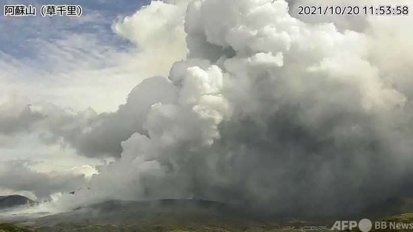 【10月21日 AFP】20日正午前、熊本県の阿蘇山(Mount Aso)が噴火した。噴煙は3500メートル上空まで到達。人気観光地である同山を訪れていた人々は急きょ下山した。負傷者が出たとの情報はない。