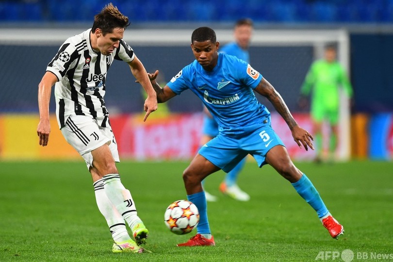 グループHは、同日終盤に途中出場のデヤン・クルゼフスキ(Dejan Kulusevski)のヘディングでFCゼニト(FC Zenit)に1-0で勝利して3連勝を飾ったユベントスが首位に立ち、チェルシーが3ポイント差で2位につけている。(c)AFP