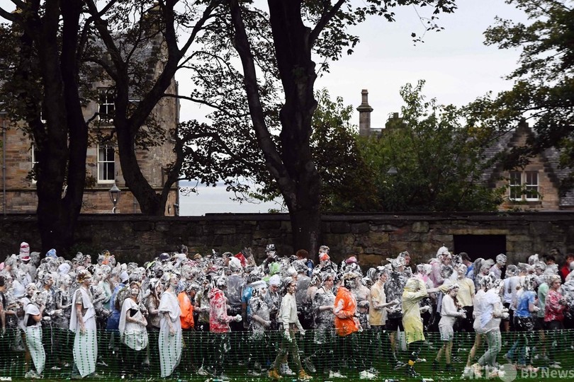 【10月25日 AFP】英スコットランドのセントアンドルーズ大学(University of St Andrews)で新入生歓迎イベント「レーズン・マンデー(Raisin Monday)」が行われ、思い思いの面白い服装をした新入生らが大量のシェービングフォームを体中に塗りつけ合った。このイベントは、毎年1週間にわたって行われる新入生オリエンテーションのハイライトとなっている。(c)AFP