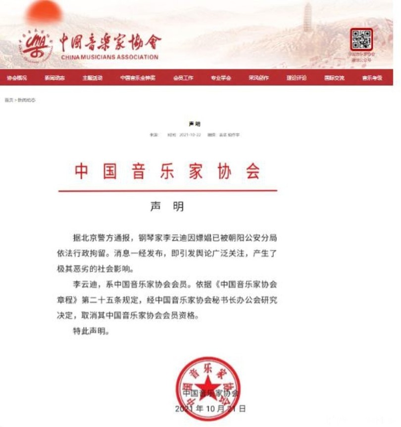 【10月22日 CGTN Japanese】北京警察は21日夜、ピアニストの李雲迪(ユンディ・リ、39歳、男)に対して、買春行為を理由に法に基づき行政拘留の処罰を科したと発表しました。李雲迪本人は買春の事実について全て認めたとのことです。中国音楽家協会は22日、公式サイトを通じて、李雲迪の会員資格を剥奪したと発表しました。