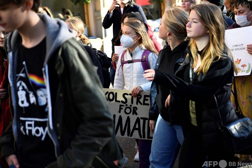 【10月23日 AFP】スウェーデンの首都ストックホルムで22日、気候変動対策を求める運動「フライデーズ・フォー・フューチャー(Fridays For Future、未来のための金曜日)」のデモが行われ、同国の環境活動家グレタ・トゥンベリ(Greta Thunberg)さんも参加した。(c)AFP