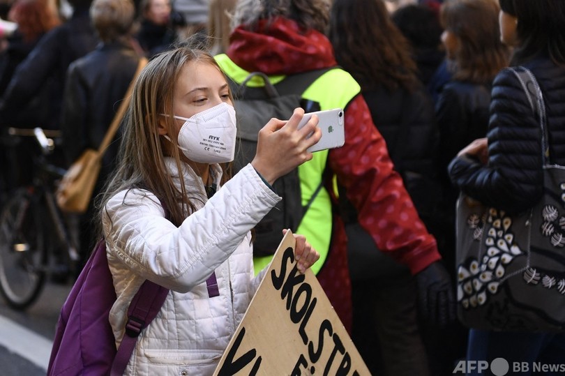 【10月23日 AFP】スウェーデンの首都ストックホルムで22日、気候変動対策を求める運動「フライデーズ・フォー・フューチャー(Fridays For Future、未来のための金曜日)」のデモが行われ、同国の環境活動家グレタ・トゥンベリ(Greta Thunberg)さんも参加した。(c)AFP