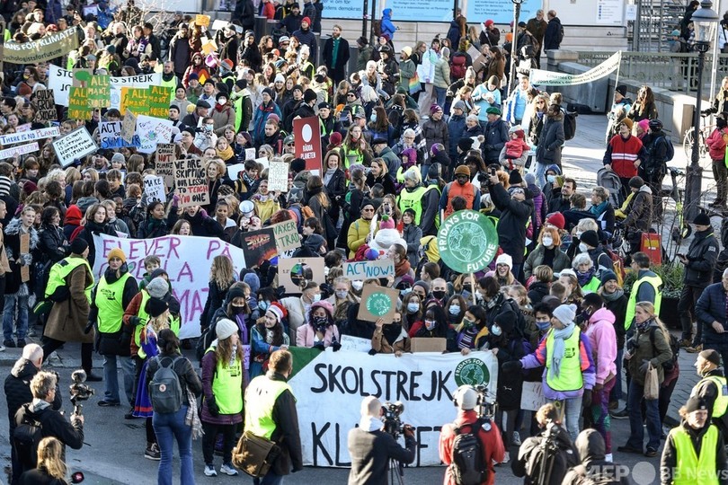 スウェーデン首都で気候変動対策求めるデモ、トゥンベリさんも参加