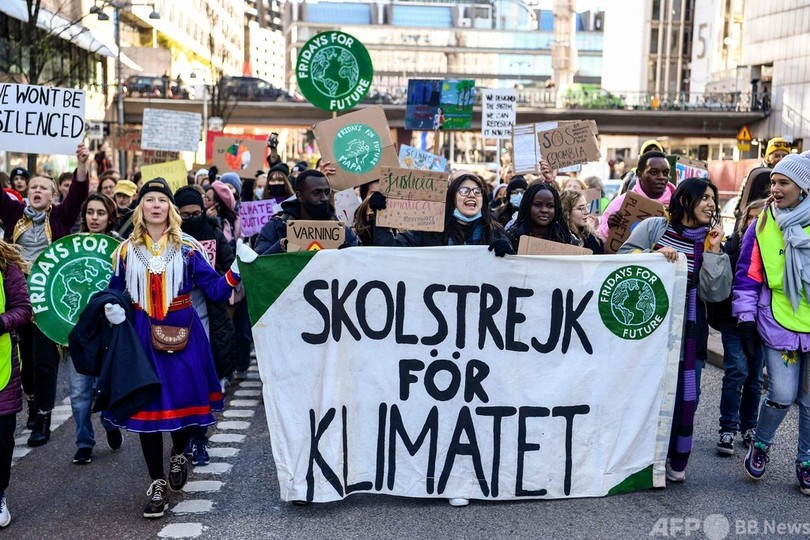 スウェーデン首都で気候変動対策求めるデモ、トゥンベリさんも参加