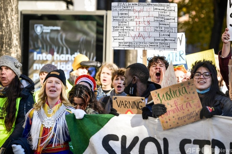 【10月23日 AFP】スウェーデンの首都ストックホルムで22日、気候変動対策を求める運動「フライデーズ・フォー・フューチャー(Fridays For Future、未来のための金曜日)」のデモが行われ、同国の環境活動家グレタ・トゥンベリ(Greta Thunberg)さんも参加した。(c)AFP