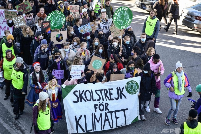 スウェーデン首都で気候変動対策求めるデモ、トゥンベリさんも参加