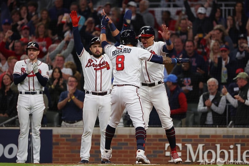 ブレーブスは初回に相手先発のウォーカー・ビューラー(Walker Buehler)をとらえて先制すると、4回にはエディー・ロサリオ(Eddie Rosario)が右翼ポール際に飛び込む3点本塁打を放って勝ち越し、そのまま逃げ切った。