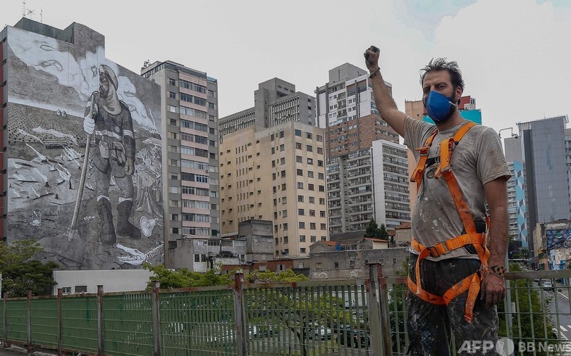 【10月31日 AFP】ブラジルの最大都市サンパウロ(Sao Paulo)でこのほど、「ムンダノ(Mundano)」の名前で活動しているストリートアーティスト(36)が気候変動への関心を高めるために巨大な壁画を公開した。材料は、火災に見舞われたアマゾン(Amazon)の熱帯雨林などから集めた灰だ。