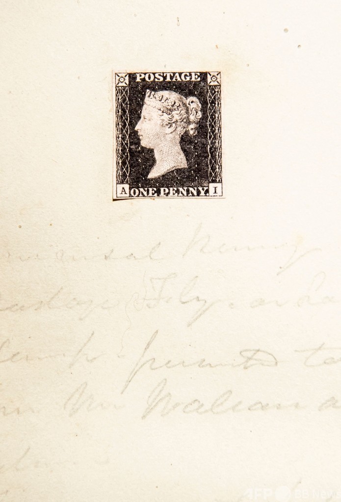 【10月27日 AFP】「ペニー・ブラック(Penny Black)」と呼ばれる世界最初の切手が、12月に英ロンドンで競売に掛けられる。推定落札価格は550万~820万ドル(約6億3000万~9億4000万円)。(c)AFP