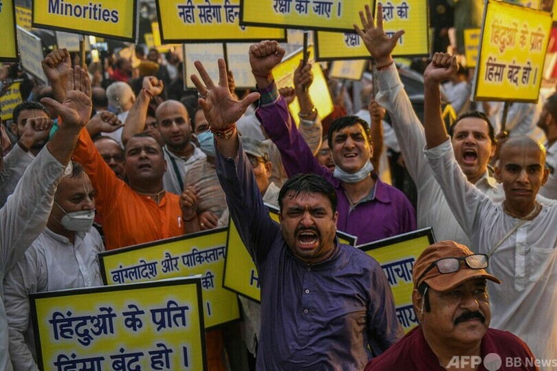 トリプラ州と国境を接し、イスラム教徒が多数派を占めるバングラデシュでは今月、ヒンズー教の祭典で神像の膝の上にイスラム教の聖典コーラン(Koran)が置かれた映像が拡散したことでヒンズー教寺院が襲撃され、7人が死亡した。暴動は12の県に広がった。