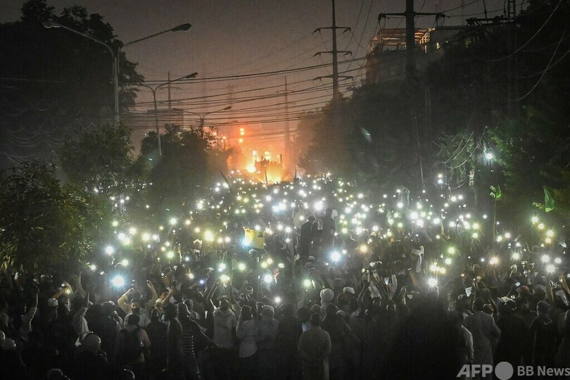 【今日の1枚】携帯電話のライト掲げてデモ行進、パキスタン