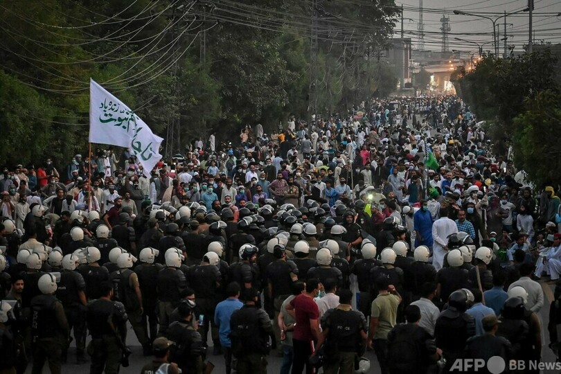 【11月2日 AFP】パキスタン・ラホール(Lahore)から首都イスラマバードへ、携帯電話のライトを掲げて行進する強硬路線のイスラム政治団体「パキスタン・ラバイク運動(TLP)」の支持者たち。同団体の創設者、故ハディム・フセイン・リズビ(Khadim Hussain Rizvi)師の息子ハフィズ・サード・フセイン・リズビ(Hafiz Saad Hussain Rizvi)師の釈放を要求している。(c)AFP