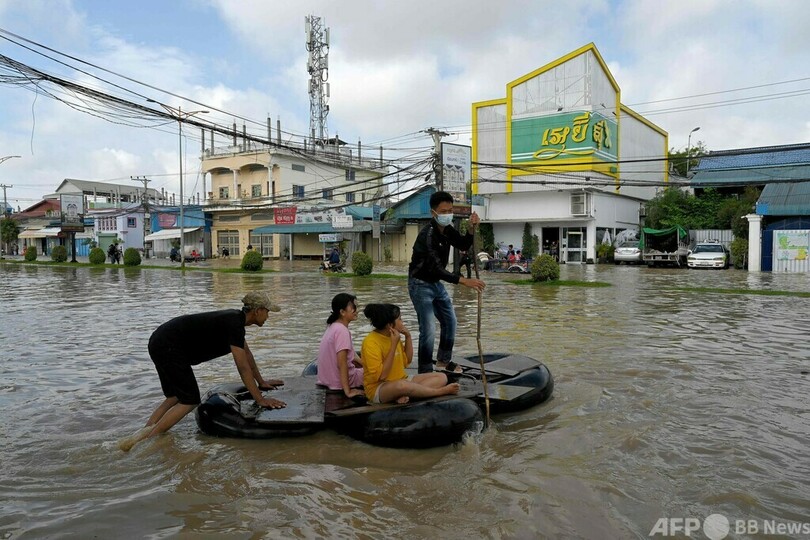 ニュース 社会 豪雨で洪水 カンボジア首都プノンペン 2021年10月29日 14:10 発信地:プノンペン/カンボジア [ カンボジア アジア・オセアニア ] このニュースをシェア ‹ › ❮ 4/11 ❯ カンボジアの首都プノンペン郊外の冠水した道路をいかだで移動する住民(2021年10月28日撮影)。(c)TANG CHHIN Sothy / AFP 画像作成中 ! 【10月29日 AFP】カンボジアの首都プノンペンで、モンスーンの豪雨による洪水が発生した。28日には、即席のいかだで移動したり、トゥクトゥクを押したりする住民の姿が見られた。(c)AFP 社会 一覧へ> メディア・報道関係・法人の方向け 写真・動画 購入のお問合せ>